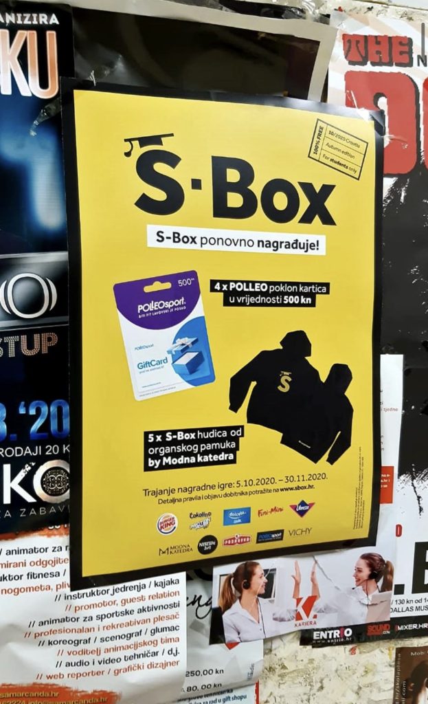 S-Box is a project that has been running in the Croatian market for 11 years. It is a box containing free samples, discount coupons, and promotional perks distributed individually. The project encourages long-term brand and/or product loyalty, and the distribution takes place in Croatia, Serbia, Slovenia, and North Macedonia, twice a year, timed for the end and start of the academic year. Over its 11 years of existence, it has become recognizable and unique in the region.