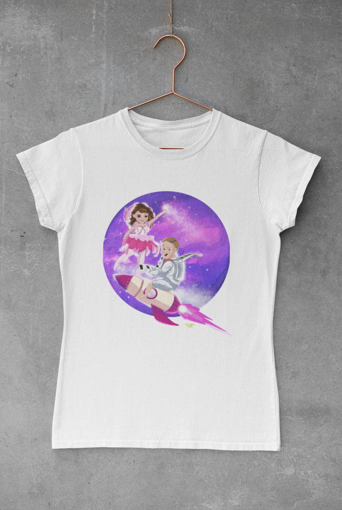 A few days before the official release of the song, Elton shared the duet's cover art featuring photos of himself and Britney as children. She as a little ballerina (which she danced as a kid); and he as an old-school elementary schooler at the piano. My drawing is a Disney-style reinterpretation, and they are placed among the landscapes of stars on the rocket of their fame.