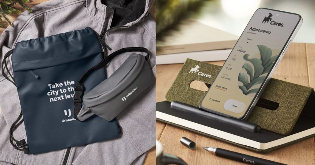 2) On-the-Go: thermos bottle + RPET backpack/bag + pen. Functional, durable, clearly branded (1 print position).