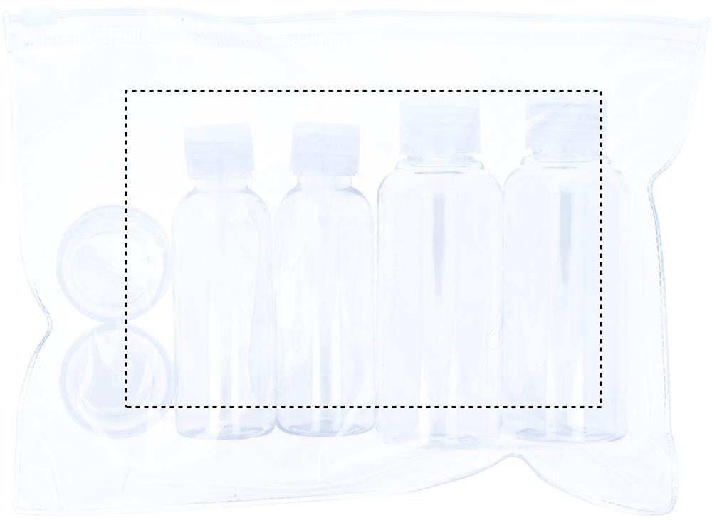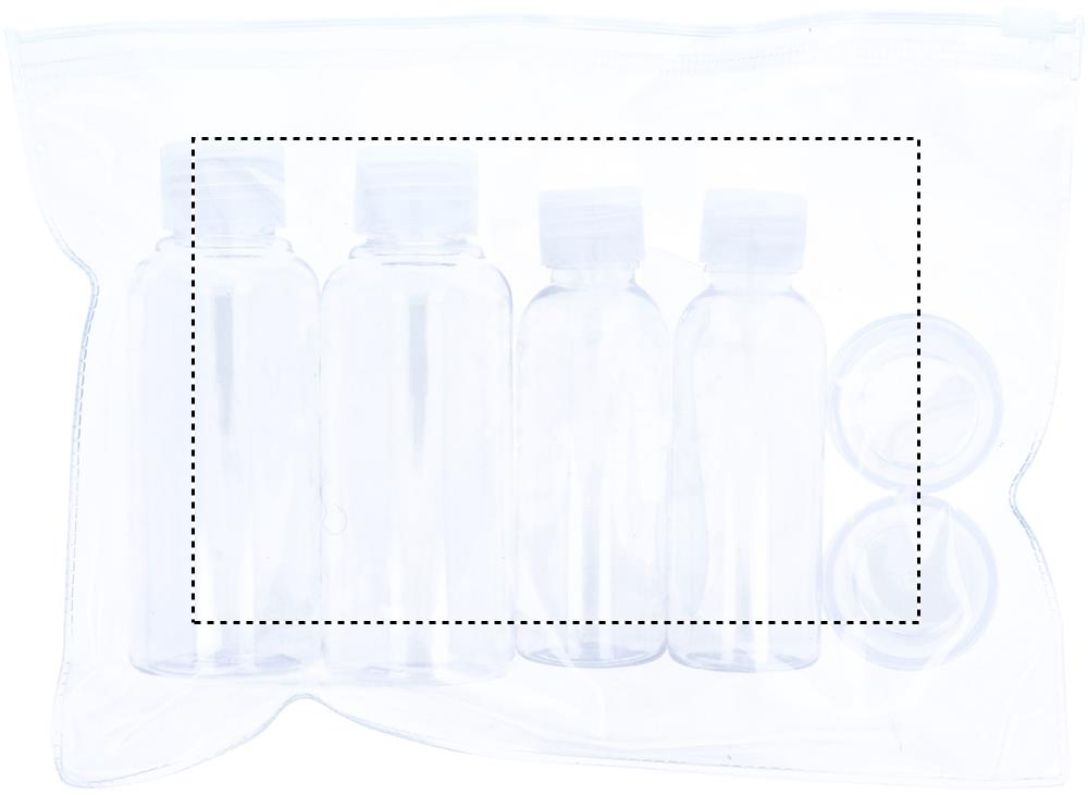 Plane travel pouch including 6 empty plastic bottles. (100ml, 50ml and 10ml)