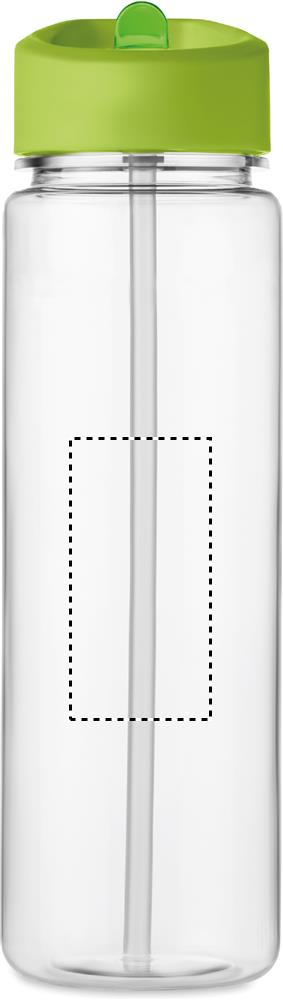 Drinking bottle in RPET and PP flip-top lid with straw. Capacity: 650ml. Not suitable for carbonated drinks.