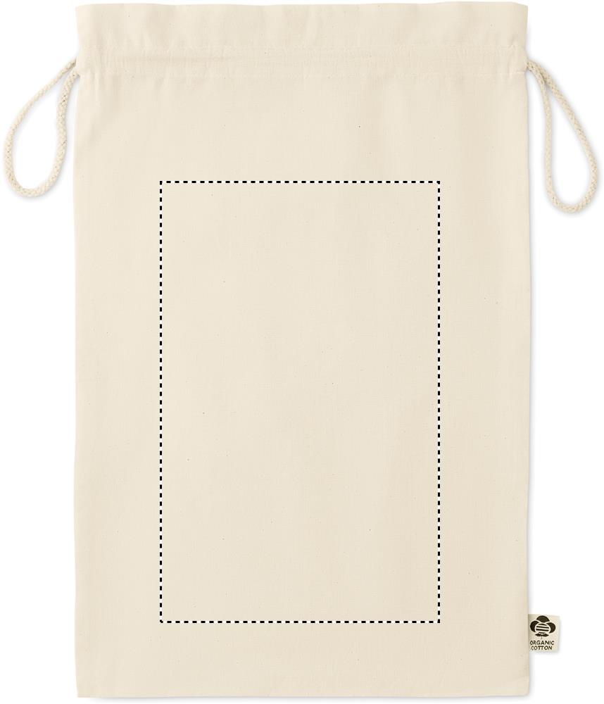 Large gift draw cord bag in organic cotton. Size approx. 30 x 47 cm. 105 gr/m².