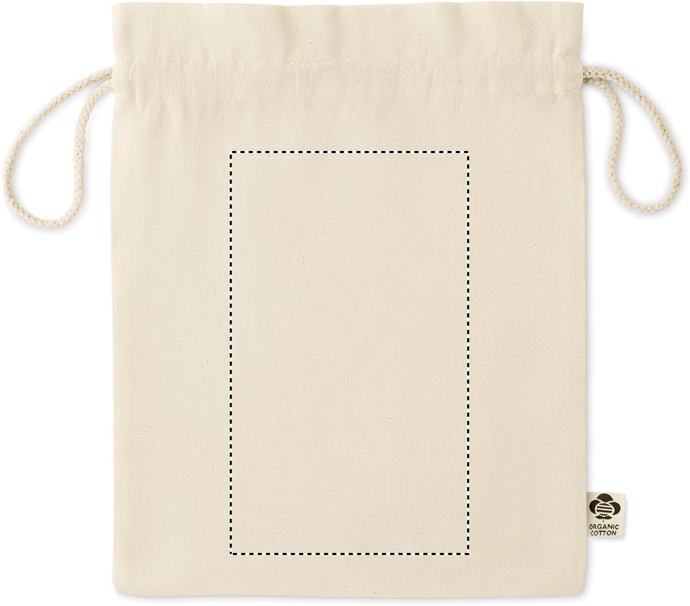 Medium gift draw cord bag in organic cotton. Size approx. 25 x 32 cm. 105 gr/m².