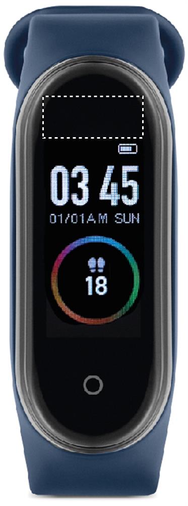 5.0 wireless smart health watch in ABS with silicone strap. 0.96 inch touch LCD display. Rechargeable Li-Pol 90 mAh battery. Requires a free app (HryFine available in both iOS and Android).