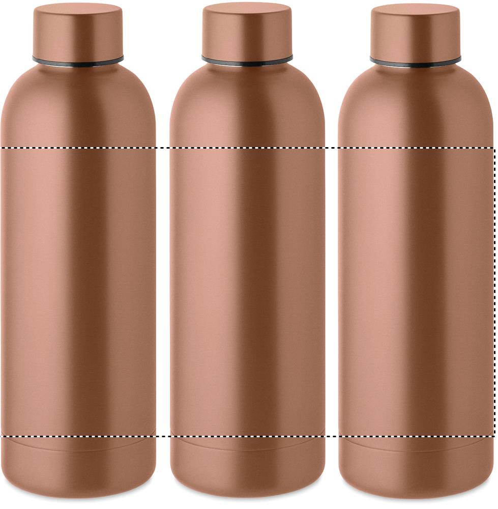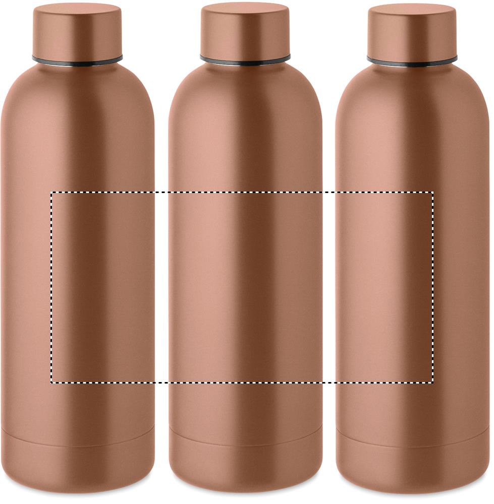 Double wall insulating vacuum bottle in recycled stainless steel (90% recycled stainless steel and 10% stainless steel). Capacity 500 ml. Leak free.