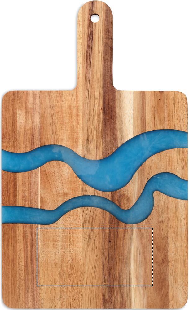 Acacia wood serving board with epoxy resin detail and handle. Wood is a natural product, there may be slight variations in colour and size per item, which can affect the final decoration outcome.