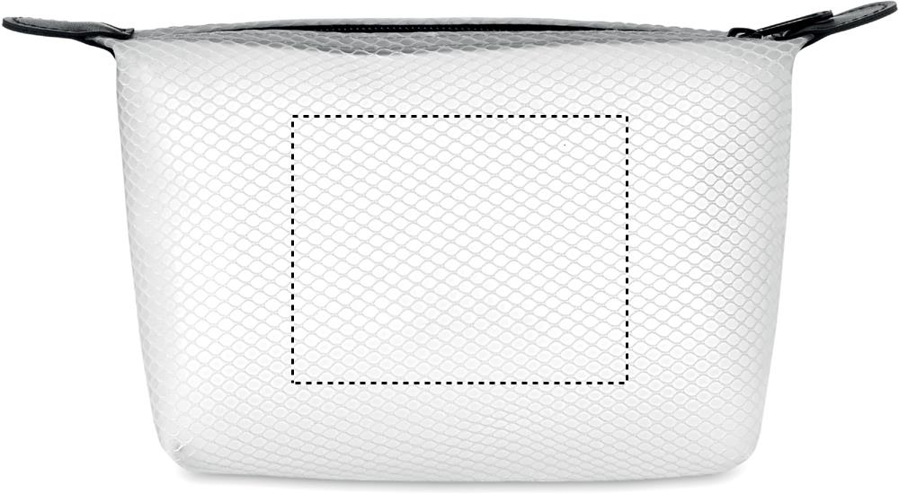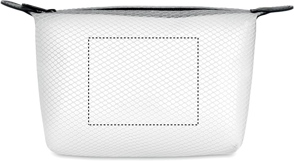 Cosmetic bag in transparent EVA mesh with black zipper.
