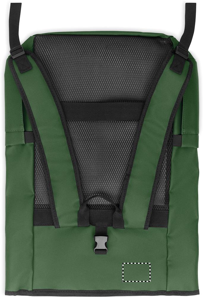 Roll top 15 inch laptop backpack in PU coated 600D RPET polyester and RPET polyester lining. Meshed padded back with zippered pocket and trolley strap. Padded shoulder strap with mesh inside finishing.