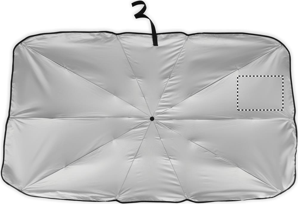 Windshield sun shade car umbrella in 190T pongee with 1 side silver lining. Manual open/close.