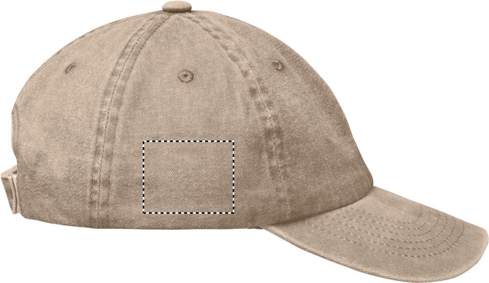 Vintage 6 panel baseball cap in washed cotton. 265 gr/m² with adjustable hook and loop closure. 6 stitched eyelets in matching colour. Size 7 1/4.