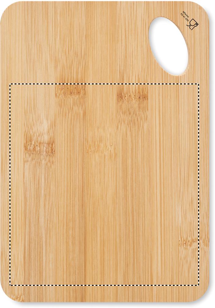 Cutting board in bamboo wood with hanging hole. Bamboo is a natural product, there may be slight variations in colour and size per item, which can affect the final decoration outcome.