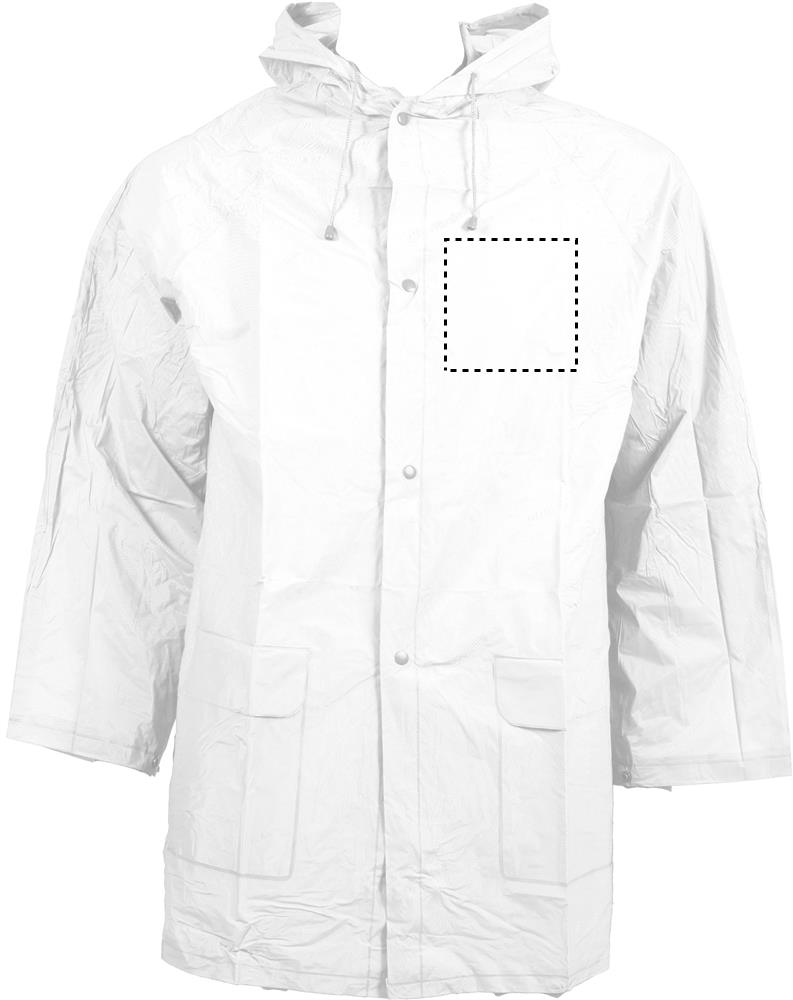 PVC raincoat with hood. Press-stud fastening.