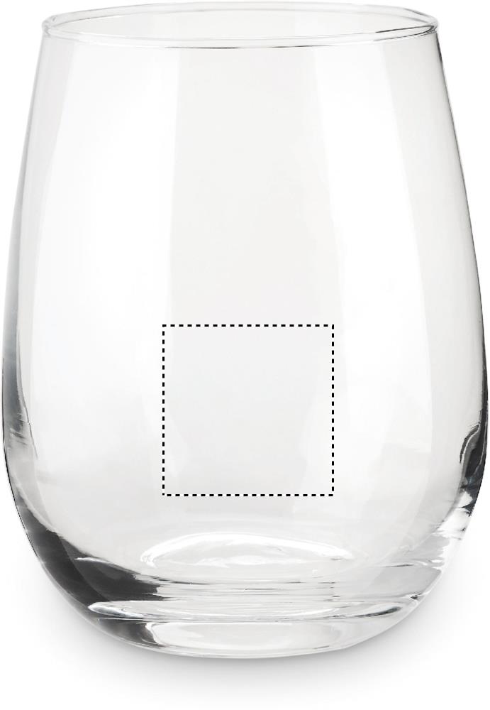 Reusable stemless glass presented in a box. Capacity: 420 ml.