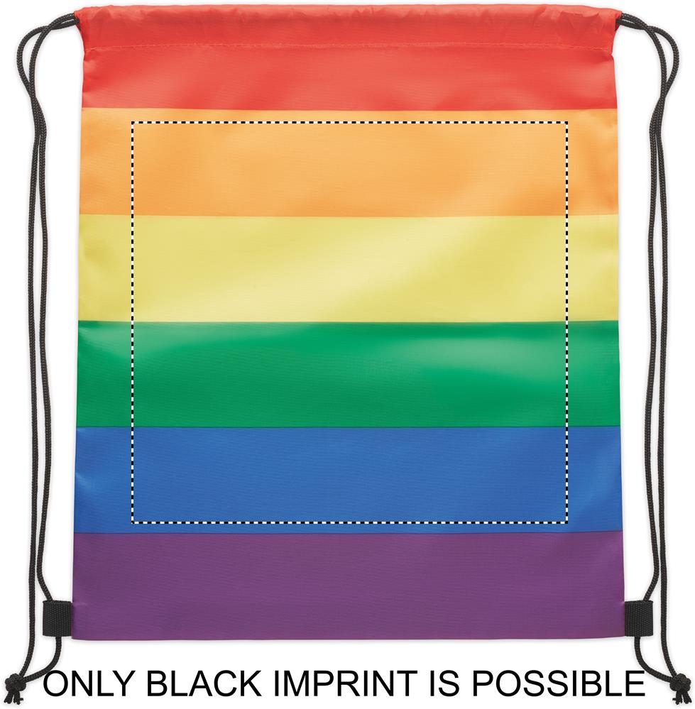 Rainbow Drawstring bag in 210D RPET polyester with PP strings.