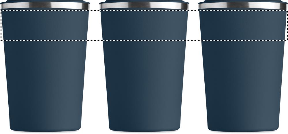 Double wall stainless steel tumbler with PP lid. Capacity: 350 ml. Leak free.