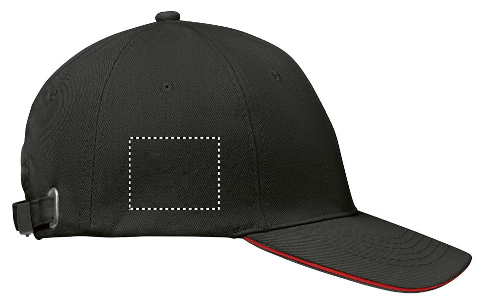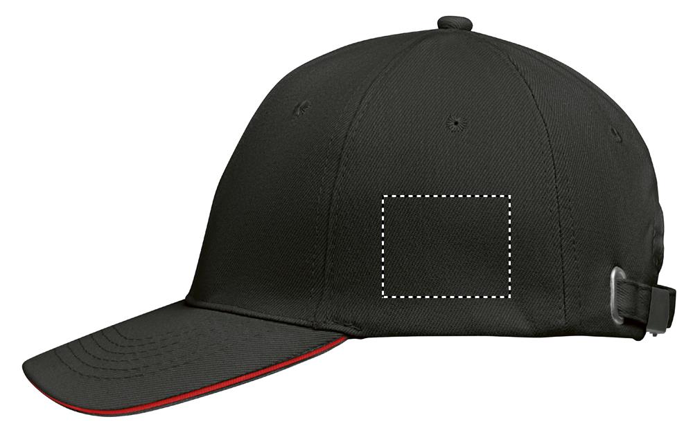 6 panel baseball cap in brushed cotton 260 gr/m² with stainless steel buckle. Size 7 1/4.