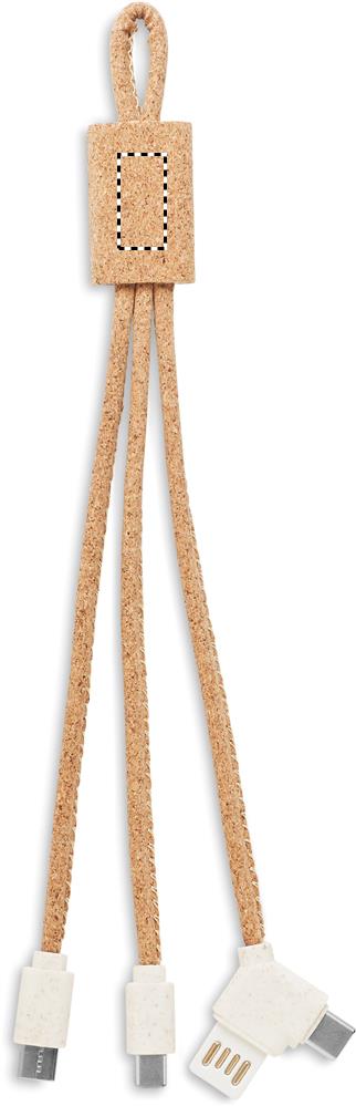 Cork 3-in-1 charging cable. Input Type A and type C. Output 3 types. Cork is 100% natural material. Due to its structural nature and surface porosity the final print result per item may have deviations.