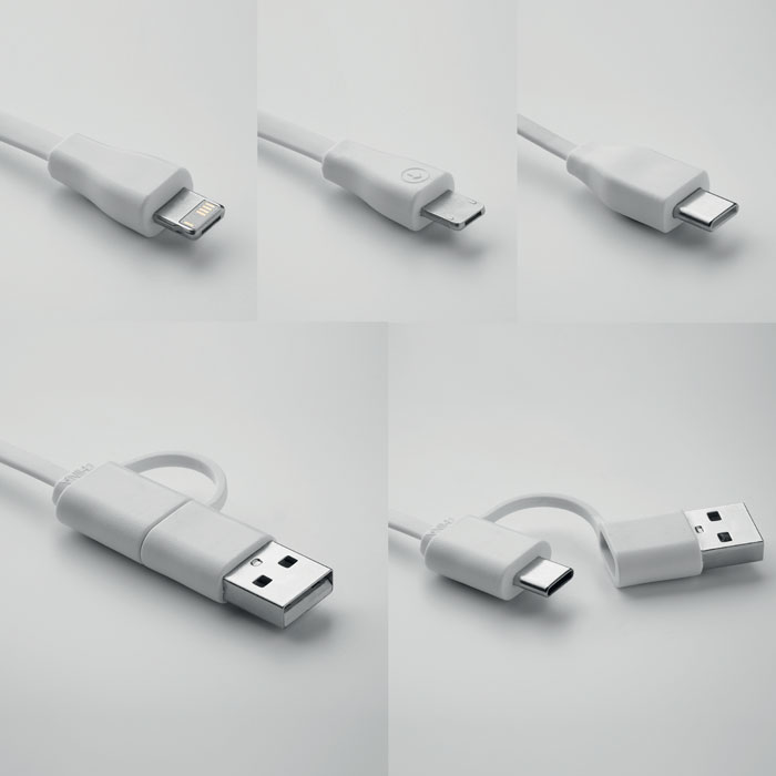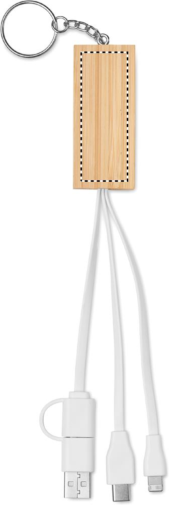 Bamboo key ring with phone stand functionality and integrated charging cable. Input: 2-in-1 Type-C & Type-A. Output: Type-C and micro-B (2 in 1 pin).