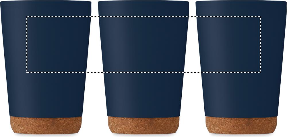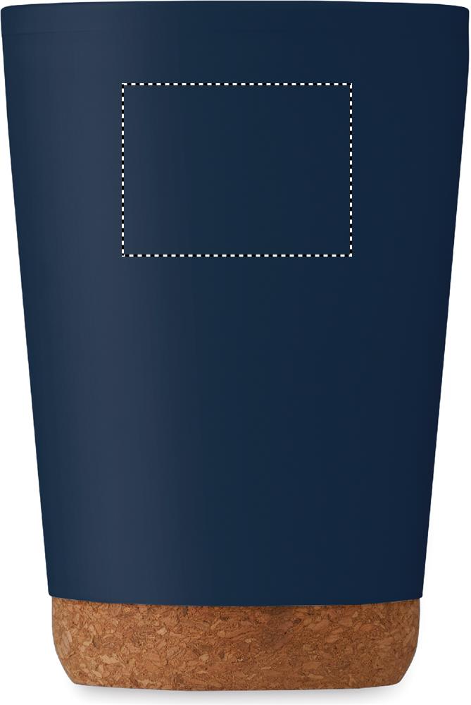 Double wall tumbler in PP with cork base and slide closing drinking mouthpiece lid in PS. Capacity: 300 ml.