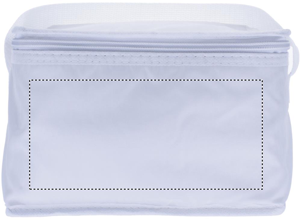 Cooler bag for 6 cans in 210 polyester. With non woven white trimmings. 80gr/m². Isolation material: foam laminated with aluminium foil. Capacity 3L.