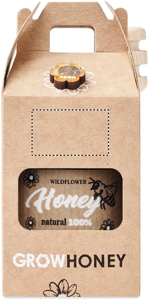 Wildflower honey jar (50g) with a wooden honey dipper. Comes in a kraft paper box. Including honey bee flower seeds. Made in EU. Not available for sale in the UK.