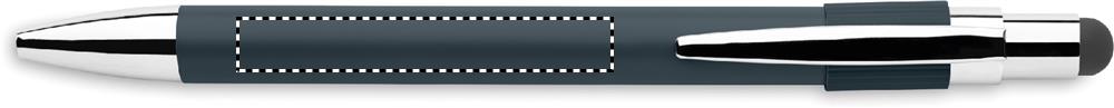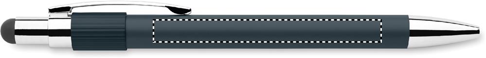 Stylus push ball spinner pen in recycled aluminium. Blue ink.