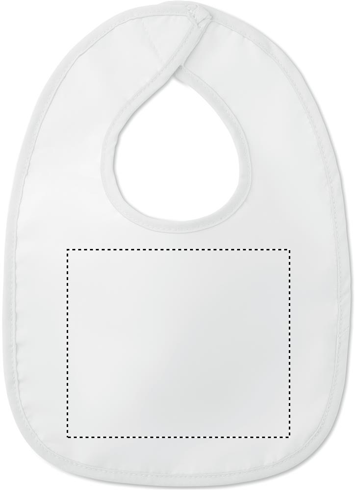 Baby bib in Polycotton and backing in PEVA. Hook and loop closure.