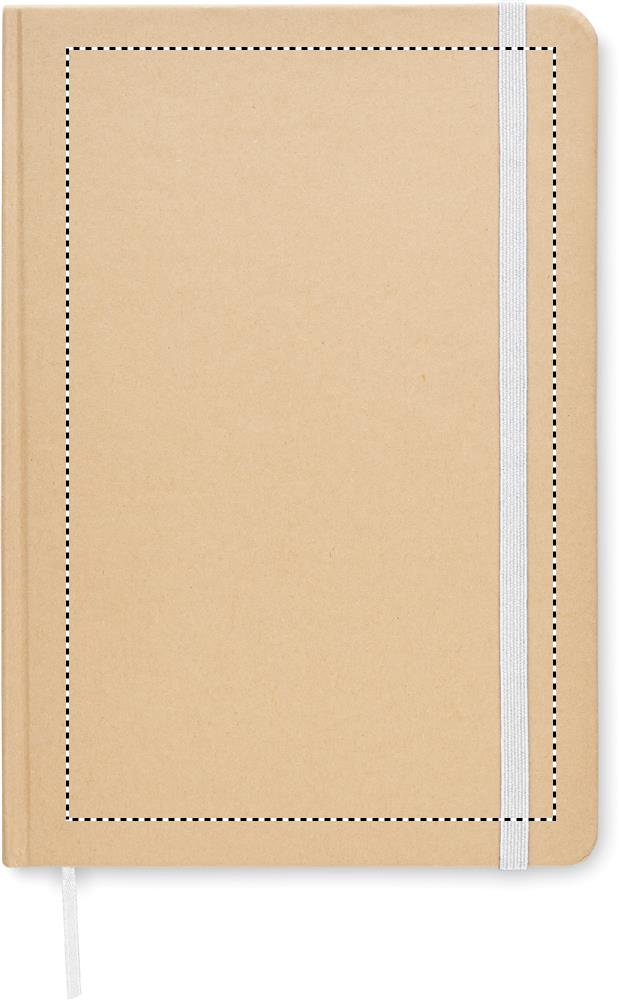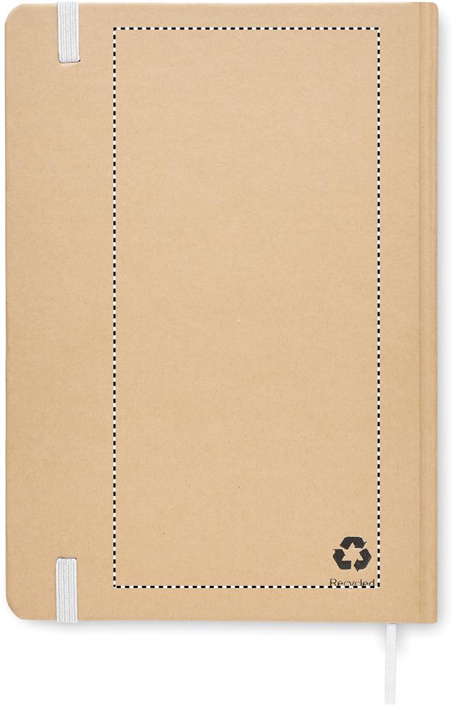 A5 notebook with hard recycled carton cover. Casebound. 160 squared recycled pages (80 sheets). Elastic closure strap, ribbon bookmark. FSC®-certified | FSC MIX CREDIT, P7.1, FSC-C213206