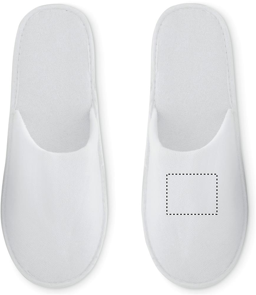 Pair of polyester hotel slippers presented in a non woven pouch. EUR size 43 – 44.