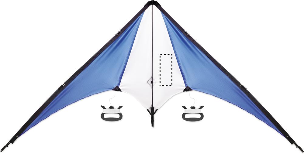 Delta kite in 210T Ripstop polyester with 2 handles. Presented in pouch.