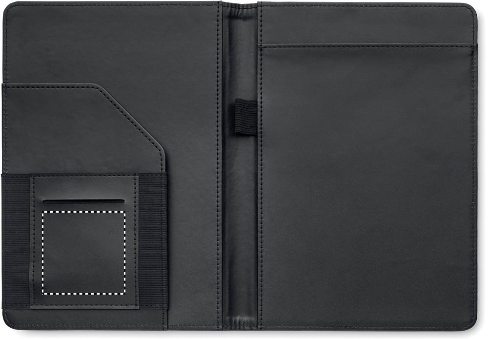 A5 portfolio in 2 tone 300D RPET. Replaceable A5 notepad. 40 white lined bamboo paper pages (20 sheets). Pen holder. Cardholders inner side and one big compartment.