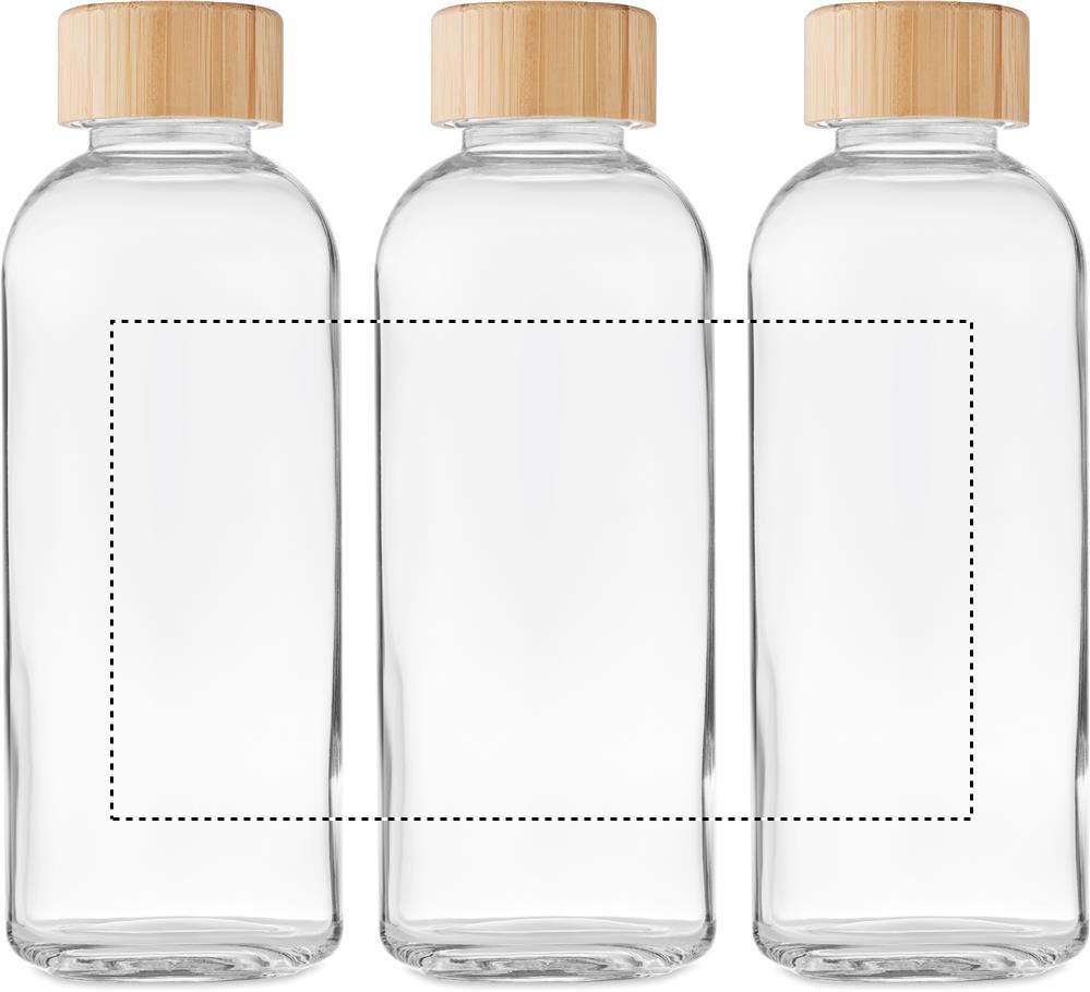 Glass bottle with bamboo lid. Capacity 650 ml. leak free. Bamboo is a natural product, there may be slight variations in colour and size per item, which can affect the final decoration outcome.