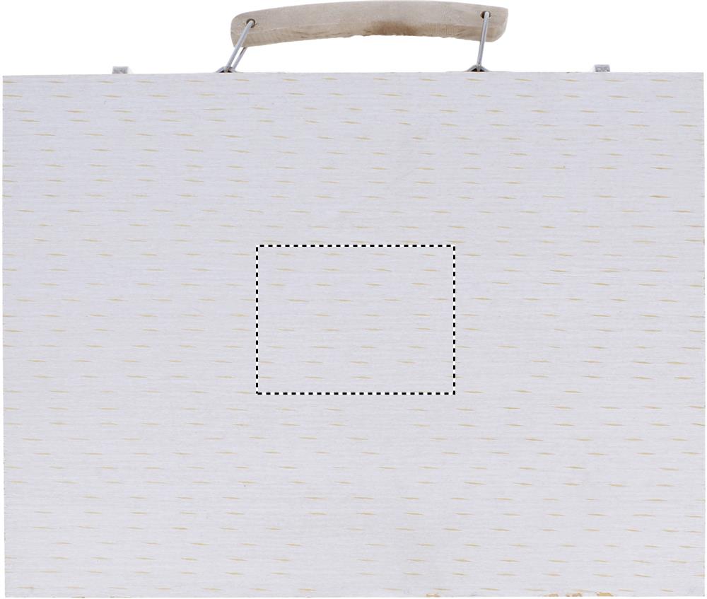Artist’s set in wooden box including 66 pieces (wax crayons, oil pastels, markers, coloured pencils, water colours, sharpener, glue, eraser, paint brush, ruler, and pencil).
