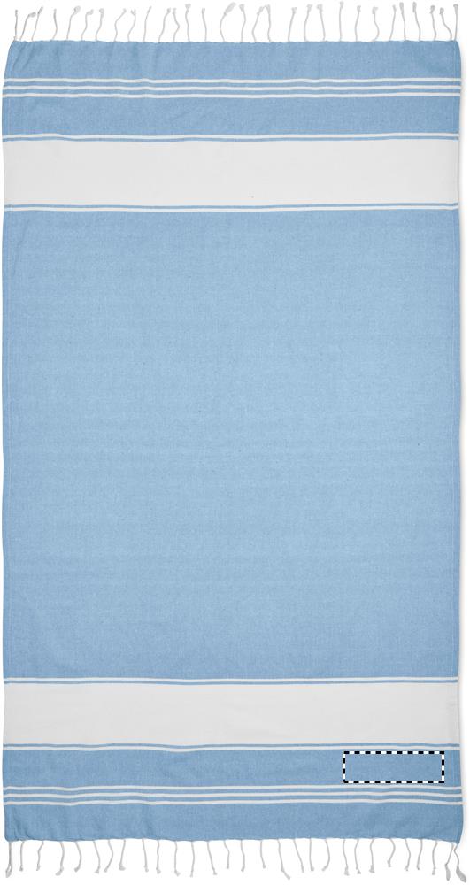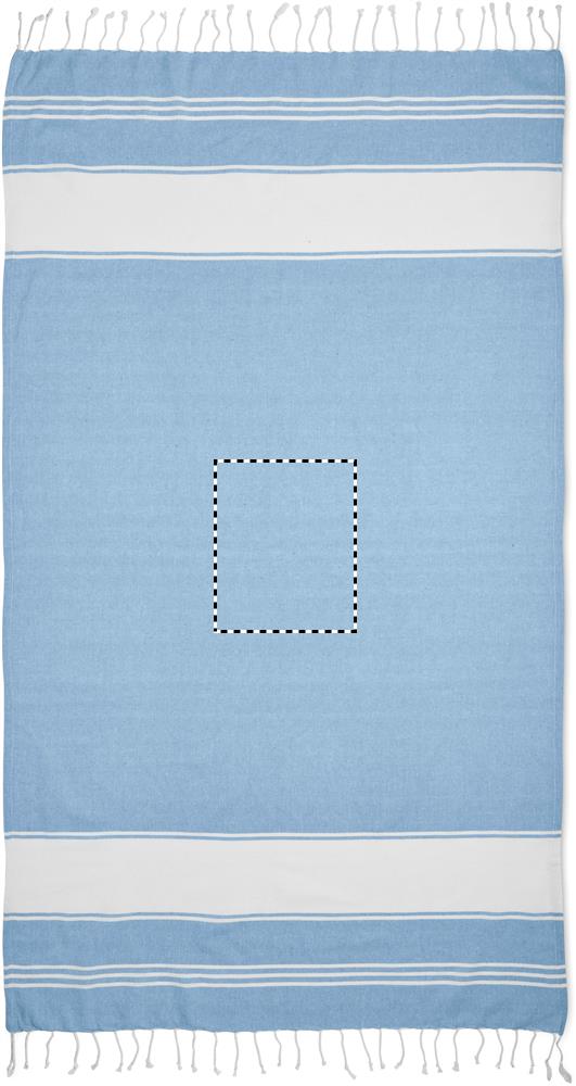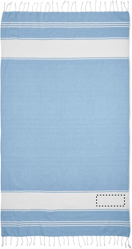 Set of hammam beach towel with drawstring bag. 70% cotton and 30% polyester 180 gr/m². 90×160 cm.