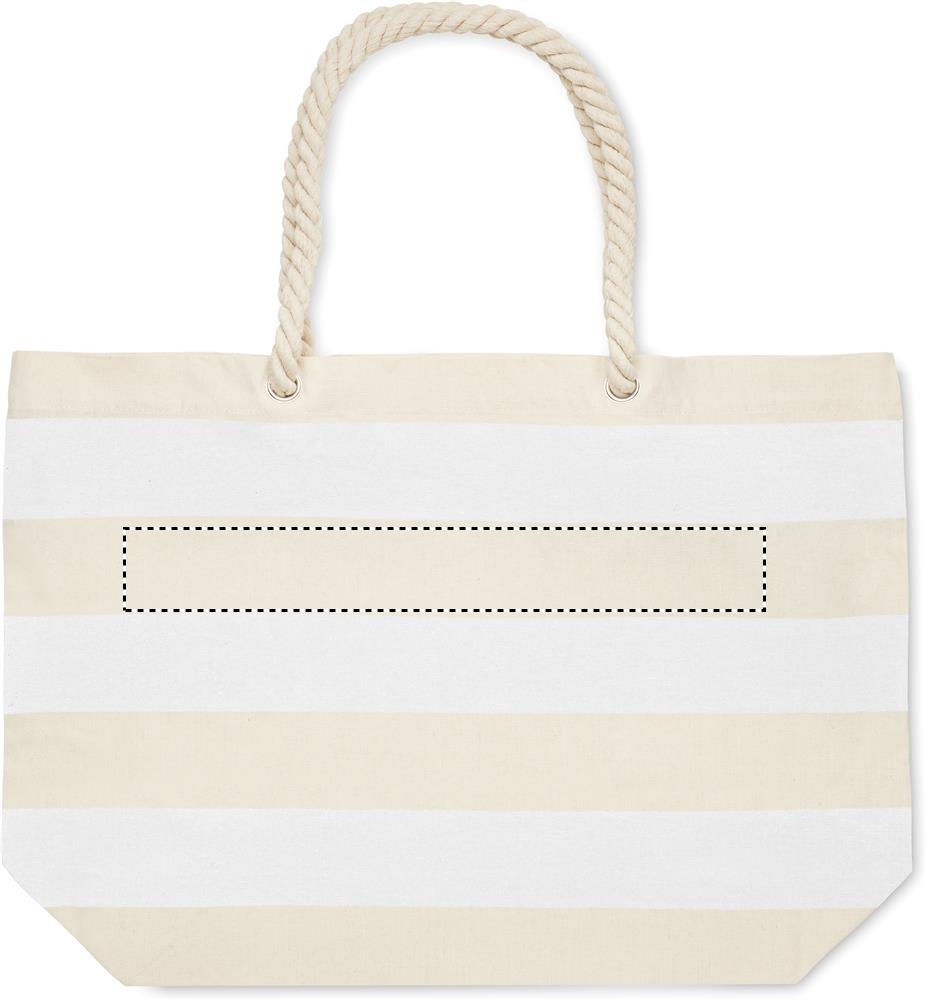 Striped beach or shopping bag in cotton with cord handle. 220 gr/m².