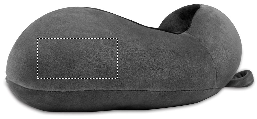 Travel pillow in foam with soft spandex. Presented with a drawcord bag in 210D polyester RPET.