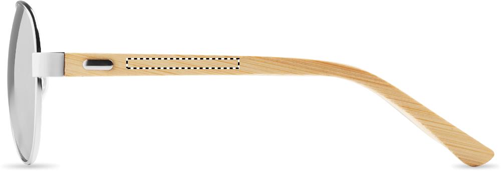 Sunglasses with bamboo arms and coloured mirrored lenses in microfibre pouch. UV400 protection. Bamboo is a natural product, there may be slight variations in colour and size per item, which can affect the final decoration outcome.