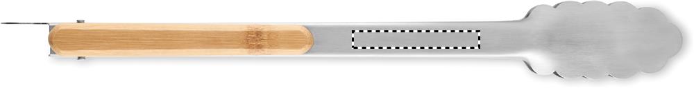 Stainless steel barbecue tongs with bamboo grips. Locking mechanism. Bamboo is a natural product, there may be slight variations in colour and size per item, which can affect the final decoration outcome.