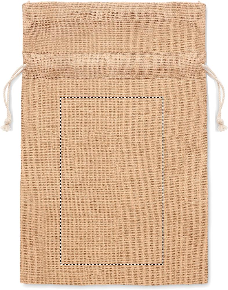 Small gift jute draw cord bag. Size approx. 14 x 22cm.