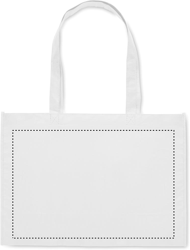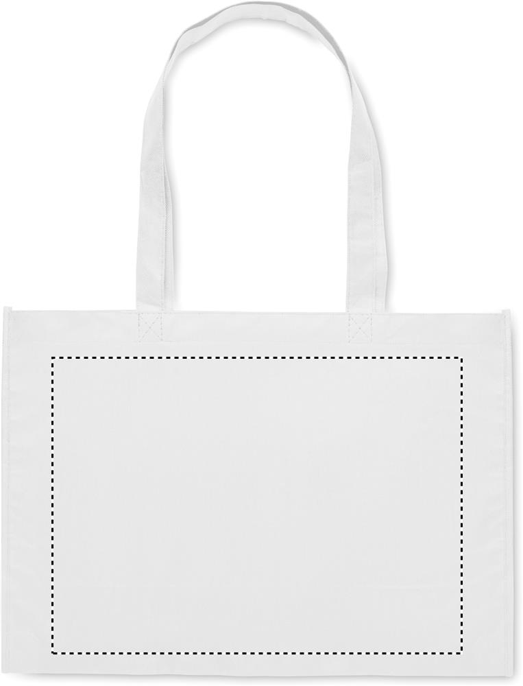 Shopping or beach bag in RPET non-woven with gussets and long handles. 80 gr/m².