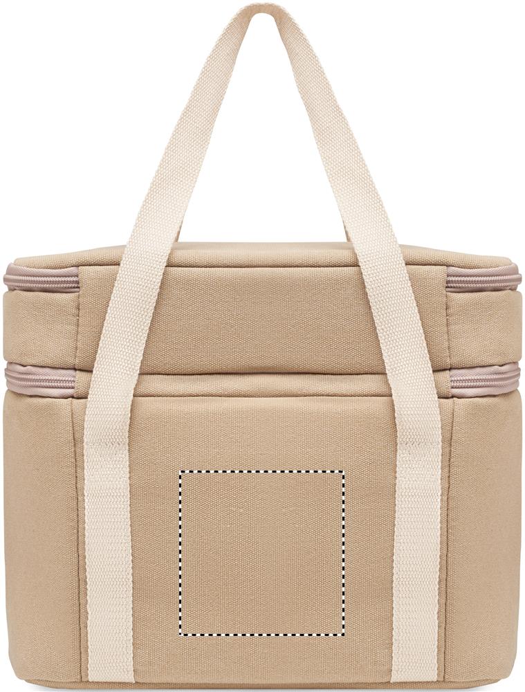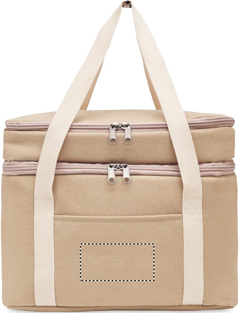 Cooler bag with 2 compartments in washed canvas with cotton strap. 320 gr/m². Insulation: 15C PEVA with 6mm PE foam.