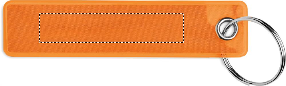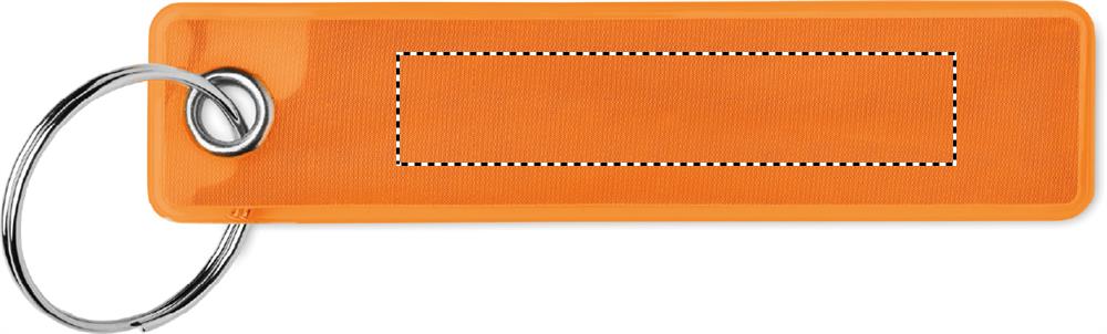 Reflective remove before flight key ring in PVC. For promotional use only.