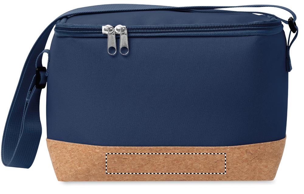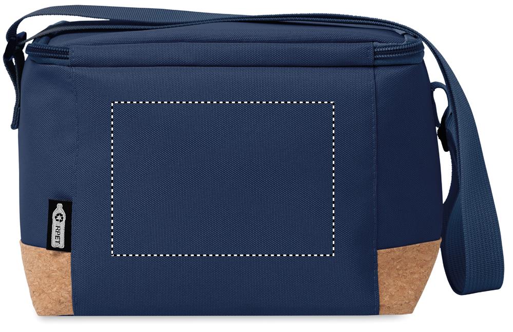 RPET 600D cooler bag with cork base detail. PEVA with 2mm PE foam. Capacity 5L.