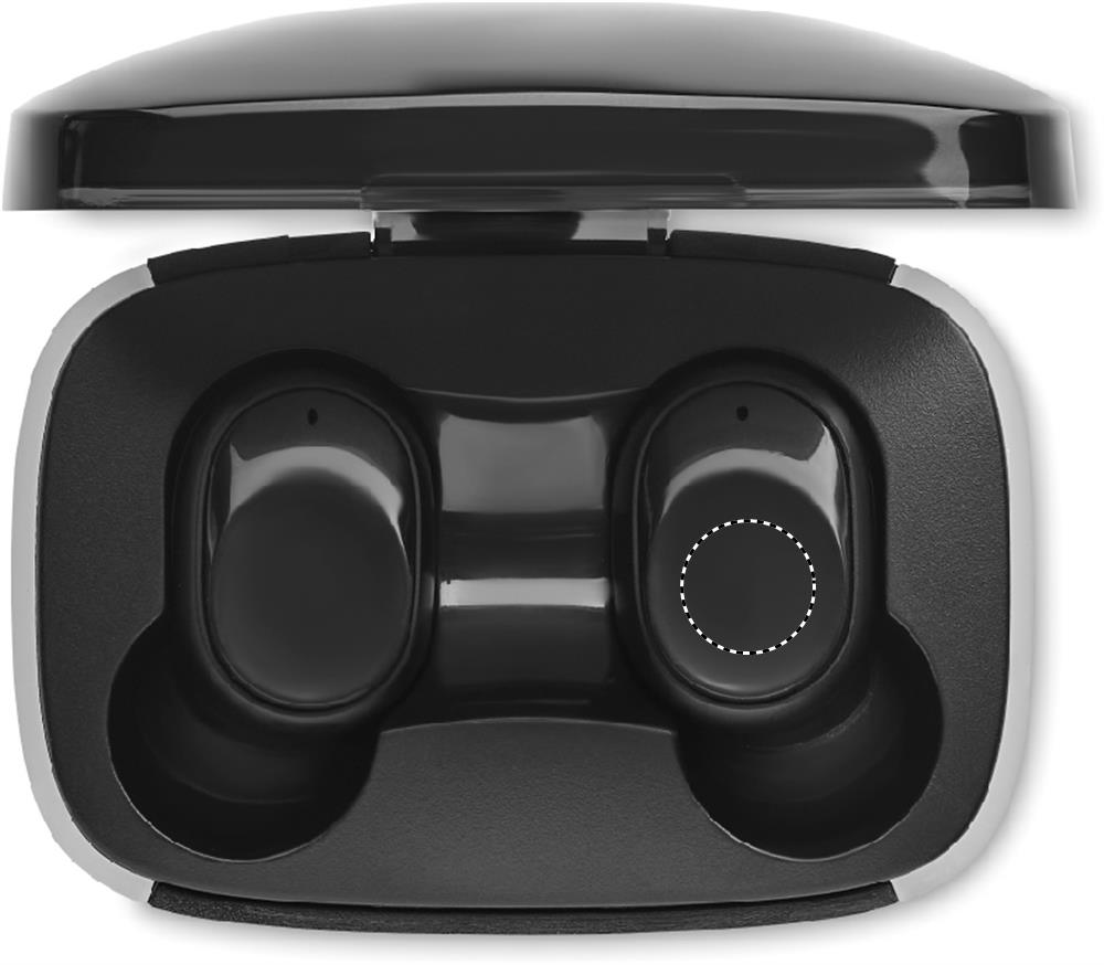 Set of 2 True Wireless Stereo (TWS) 5.1 earbuds with microphone and 25 mAh battery built-in. Playing time approx. 3 hours. Auto-pairing. Including a micro USB charging cable and a 200 mAh charging station.