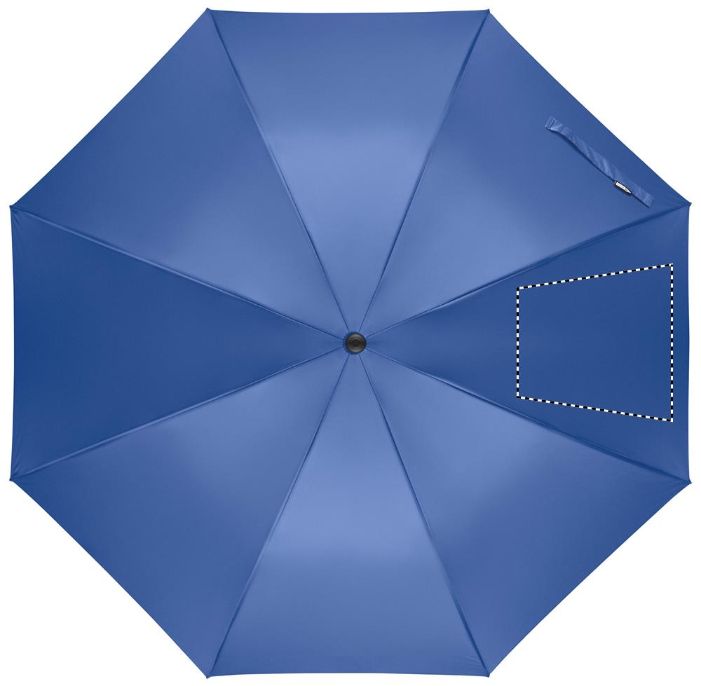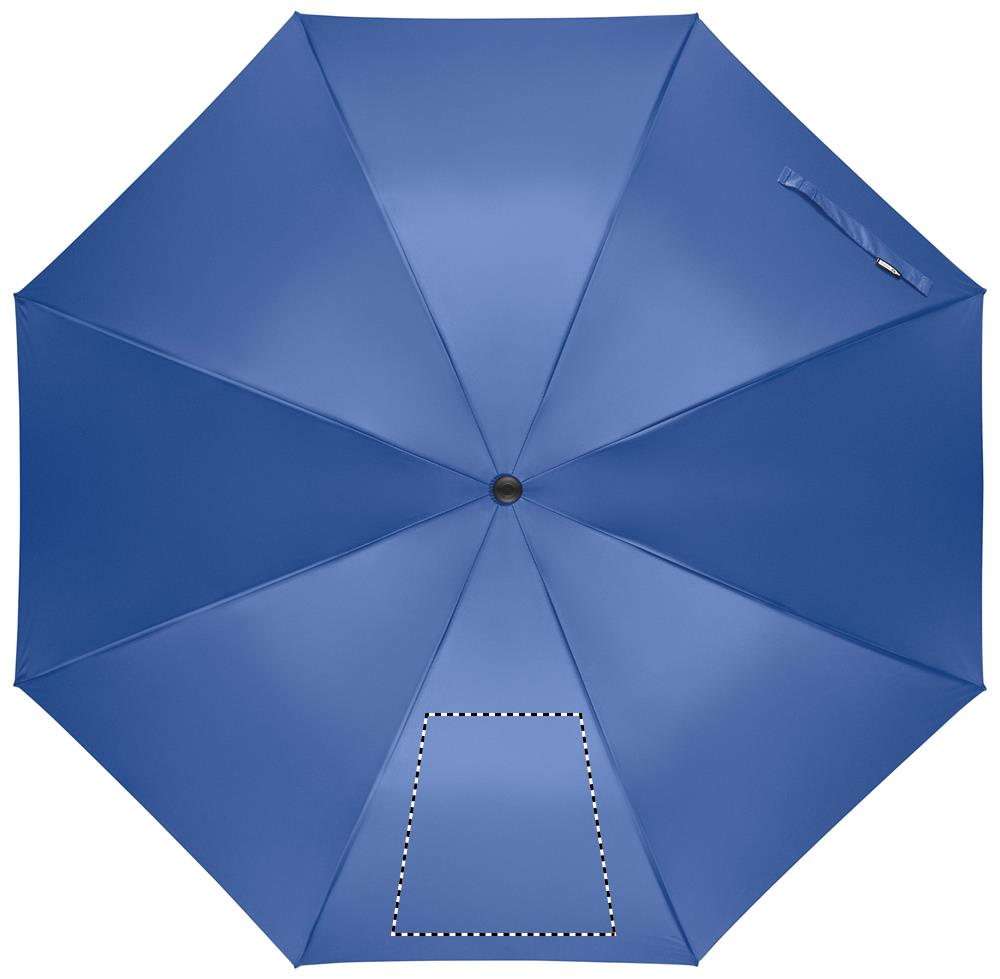 27 inch auto open wind-proof umbrella in 190T RPET pongee. Fibreglass shaft and ribs. Wheatstraw and recycled ABS handle. Plastic tips and top.
