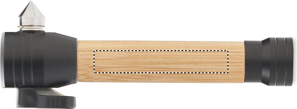 3 in 1 bamboo torch with emergency hammer and seat belt cutter. It has a magnetic base. Output lumen: 60. 2 AAA batteries excluded. Bamboo is a natural product, there may be slight variations in colour and size per item, which can affect the final decoration outcome.