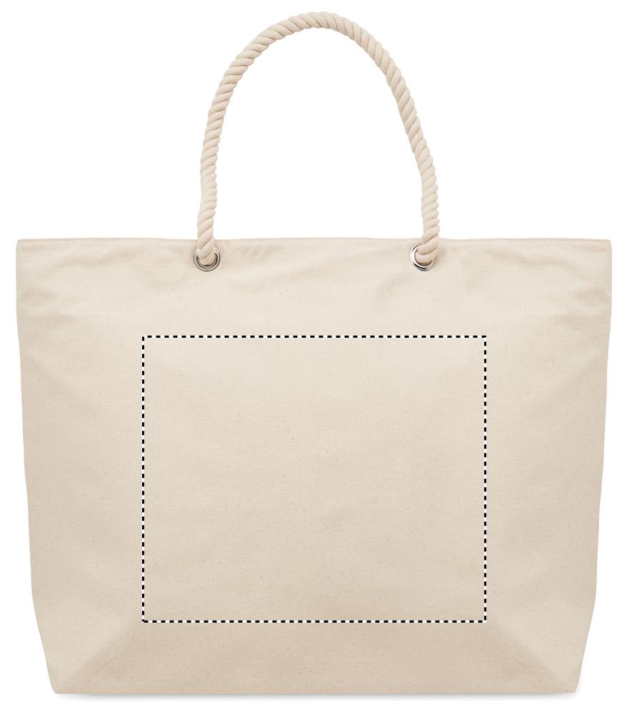Beach or shopping bag in recycled cotton (80% recycled cotton, 20% regular cotton) with cord handles. 220 gr/m².