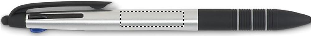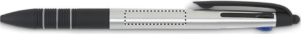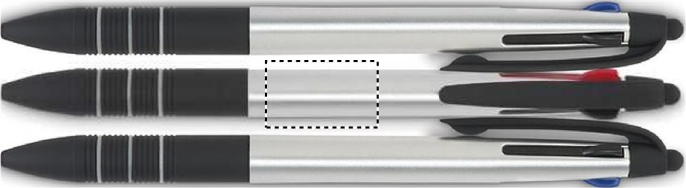 ABS pen with stylus and 3 ink colours: red, blue and black.