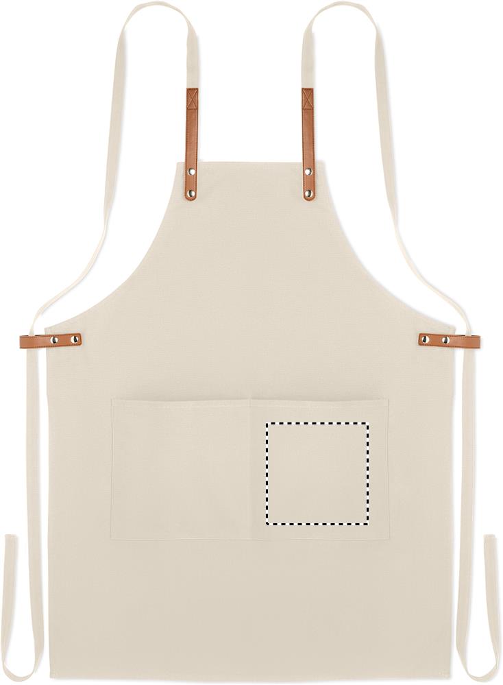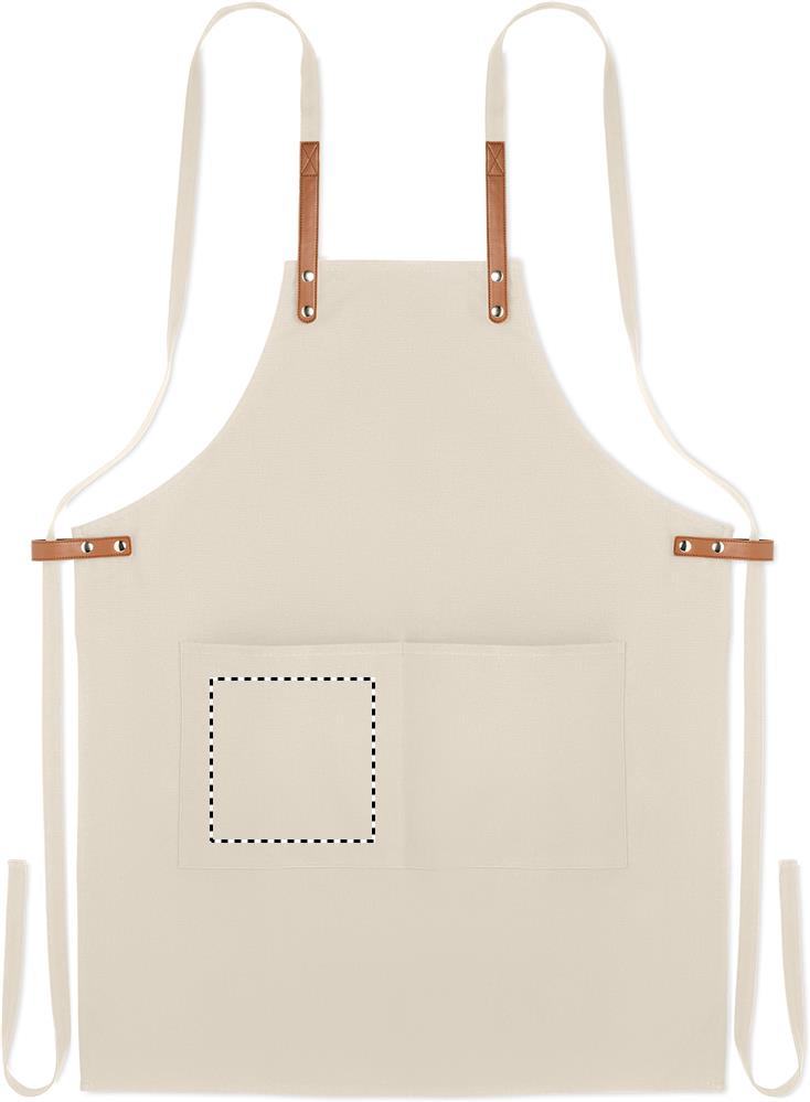 Adjustable kitchen apron with 2 front pockets in 340 gr/m² organic cotton/canvas.