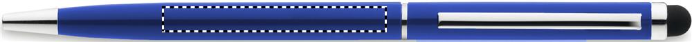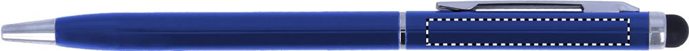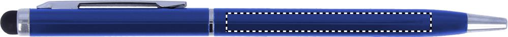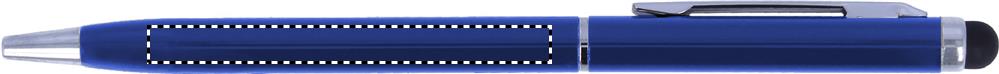 Twist action ball pen in recycled aluminium with stylus and shiny chrome clip. Blue ink.